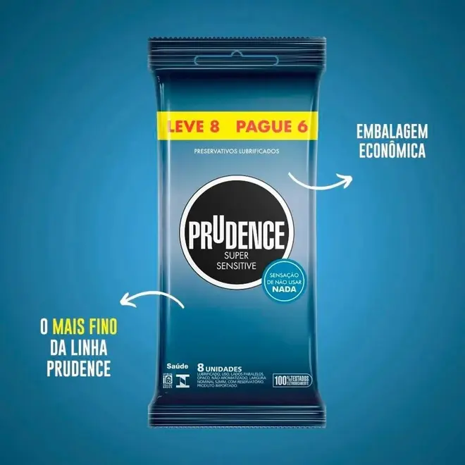 SUPER SENSITIVE: Tenha a camisinha que deixa a sensação de não estar usando nada, garantindo seu prazer e proteção durante o sexo, com o preservativo Super Sensitive da Prudence a noite vai ser marcante com a relação pegando fogo sem pensar no amanhã.