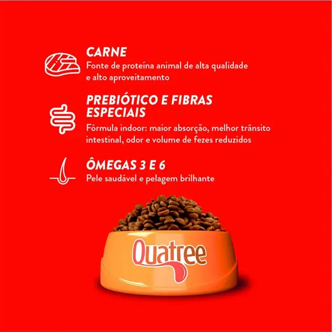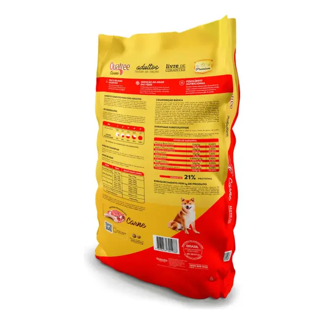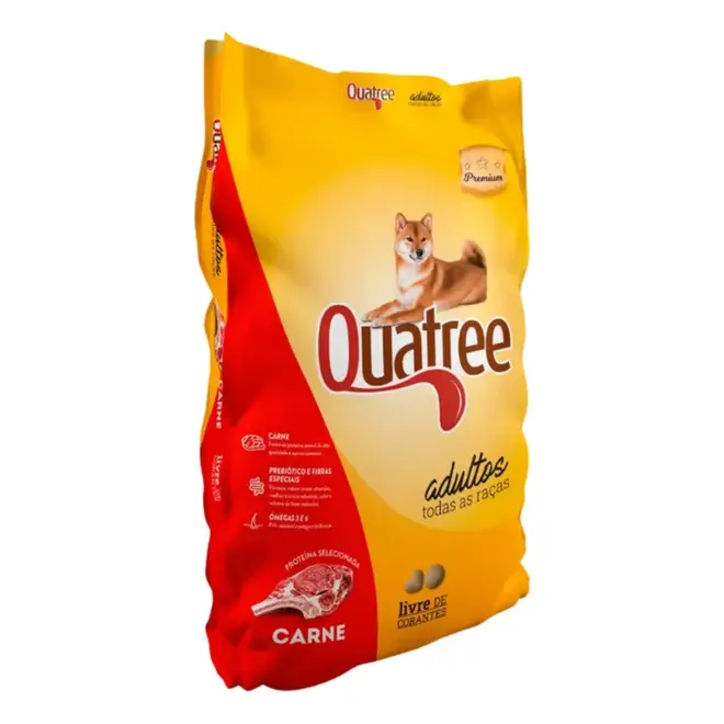 Benefícios: Nutrição completa e equilibrada: Formulada com ingredientes selecionados de alta qualidade, a Ração Quatree Carne Adulto oferece todos os nutrientes essenciais para a saúde do seu cão, como proteínas, carboidratos, vitaminas e minerais. Sabor irresistível: O delicioso sabor de carne estimula o apetite do cão, garantindo que ele se alimente com prazer e satisfação.