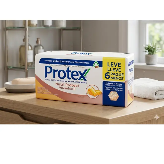 O Sabonete Antibacteriano Protex em Barra Nutri Protect é um produto desenvolvido para a higiene pessoal, que combina propriedades antibacterianas com a nutrição da pele, enriquecido com Vitamina E. Este sabonete vem em uma embalagem contendo 6 unidades de 85g cada.