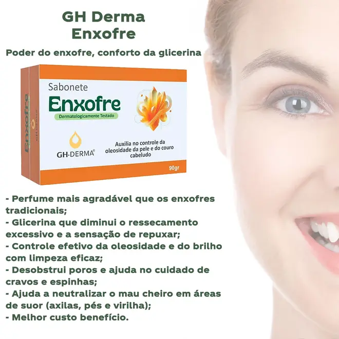 O Sabonete em Barra GH Derma Enxofre é um produto desenvolvido para a higiene diária da pele, especialmente formulado com enxofre, conhecido por suas propriedades purificantes. Auxilia na limpeza profunda da pele, removendo impurezas e contribuindo para uma aparência mais equilibrada e saudável.