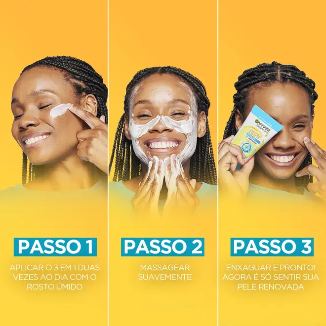Ação 3 em 1: limpa, esfolia e atua como máscara;