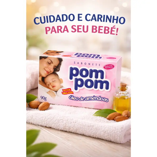 Sabonete Em Barra Infantil Pom Pom Óleo De Amêndoas