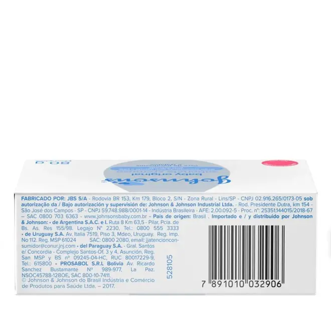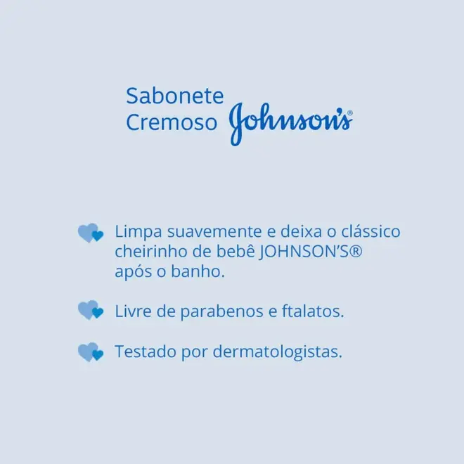Para uma limpeza suave sem agredir a pele delicada do bebê o Sabonete Em Barra Johnson's® Baby Original possui fórmula dermatologicamente testada e é livre de parabenos e ftalatos, deixando o tradicional cheirinho de bebê Johnson's® após o banho, além de ser suave e delicado o suficiente para ser usado no corpo do bebê.