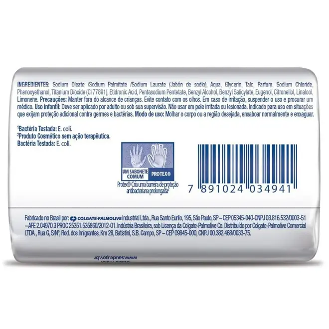 O Sabonete em Barra Protex Suave 85g oferece limpeza eficaz com proteção antibacteriana, ajudando a eliminar até 99,9% das bactérias presentes na pele.