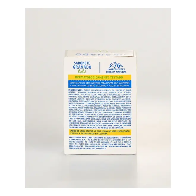 O Sabonete em Barra Granado Bebê Glicerina Tradicional 90g foi desenvolvido especialmente para a higiene delicada da pele do bebê. Sua fórmula hipoalergênica e com base vegetal limpa suavemente sem agredir ou ressecar a pele sensível.