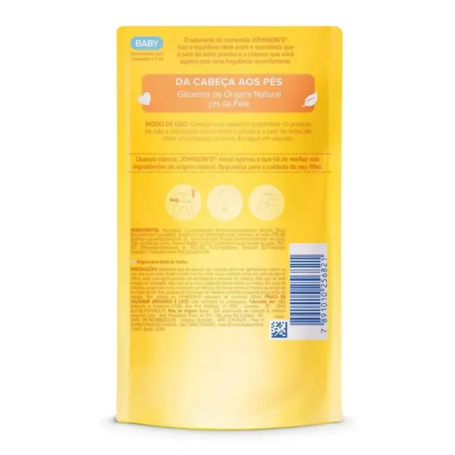 O Sabonete Líquido de Glicerina Camomila Johnson's Baby é um produto de higiene desenvolvido especialmente para bebês, com uma fórmula suave e natural, composta por 94% de ingredientes naturais e glicerina vegetal. Sua composição é hipoalergênica e livre de corantes, parabenos, sulfatos e ftalatos.