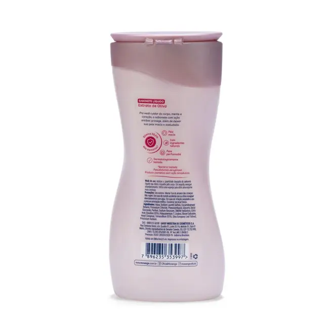 O Sabonete Líquido Monange Extrato de Oliva foi desenvolvido para proporcionar limpeza suave e cuidado diário para a pele. Sua fórmula contém extrato de oliva e glicerina, ingredientes que ajudam a manter a pele macia e hidratada após o banho.