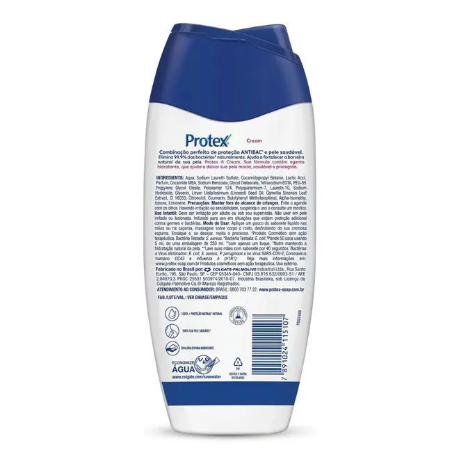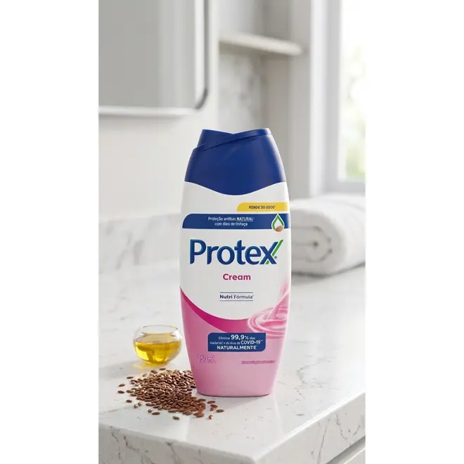 Com um volume de 250ml, é prático e perfeito para ter em casa ou levar na bolsa. Aproveite todos os benefícios e transforme seu banho em um ritual de bem-estar com Protex Cream.