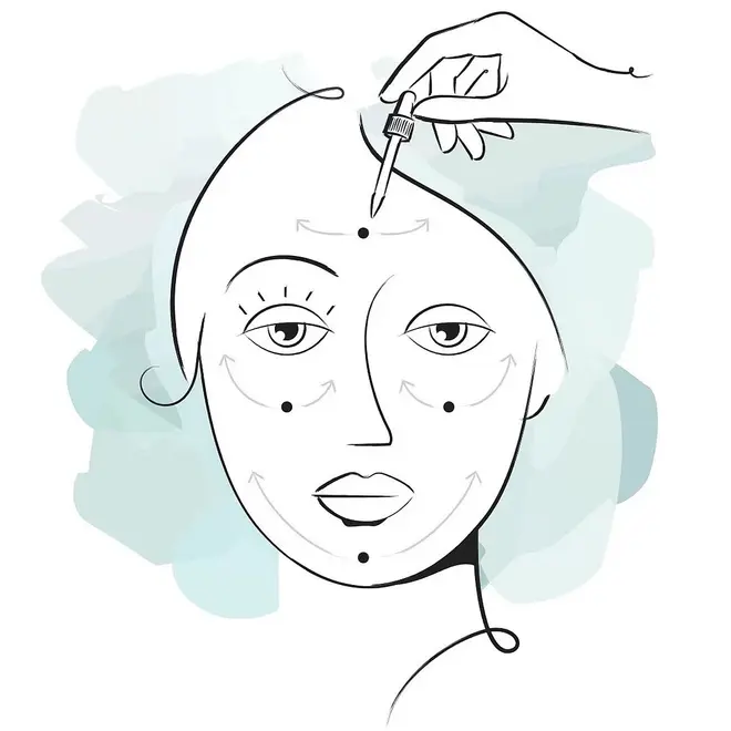 - Espalhe suavemente pelo rosto, inclusive na área dos olhos