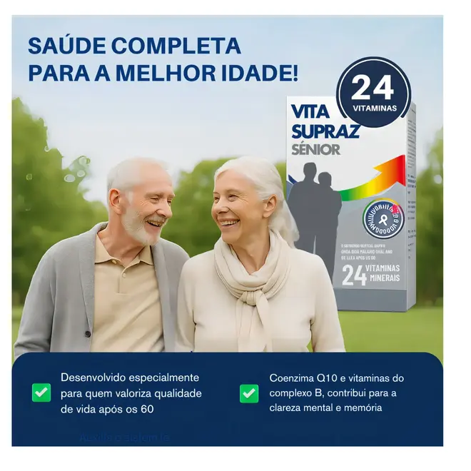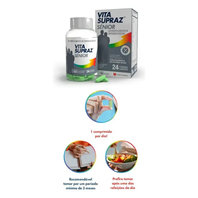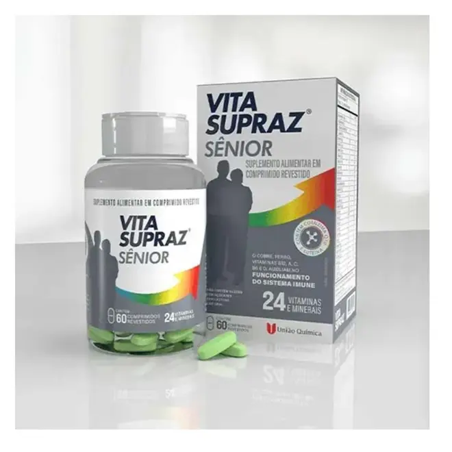 O Vitasupraz Sênior é um suplemento alimentar desenvolvido especialmente para pessoas acima de 50 anos, auxiliando na reposição de vitaminas e minerais importantes para o bom funcionamento do organismo.