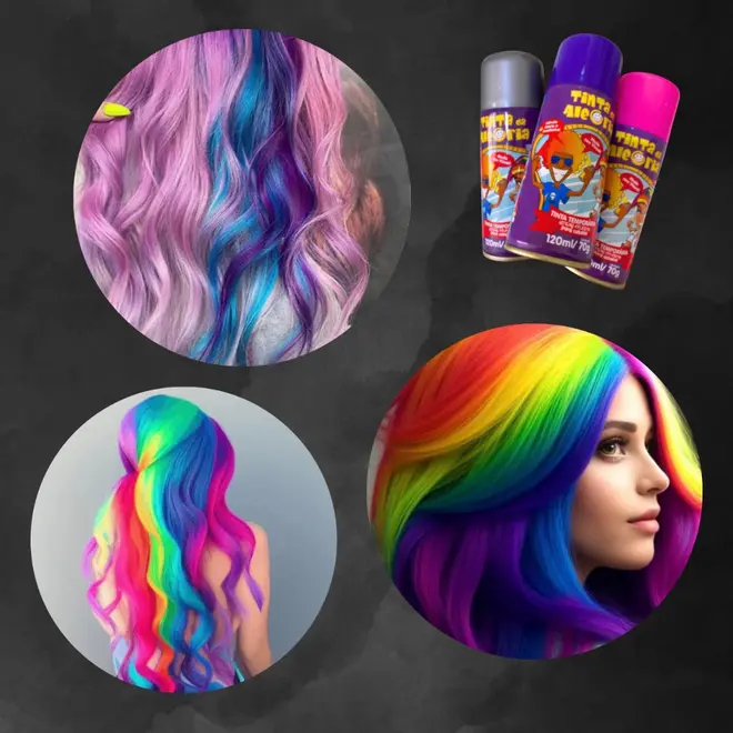 Spray de Cabelo Colorido Temporário – Tintas para Cabelo Carnaval e Festas – Sai com Água (150ml)