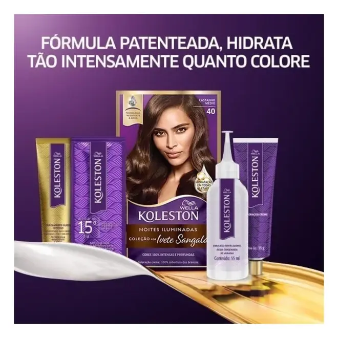 A Tintura Koleston Castanho Médio 40 proporciona coloração intensa, duradoura e com brilho, garantindo cobertura completa dos fios brancos.
