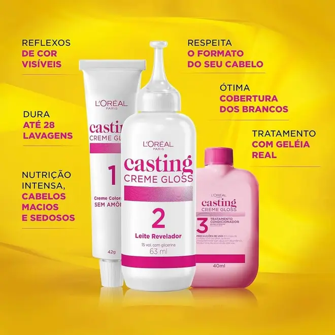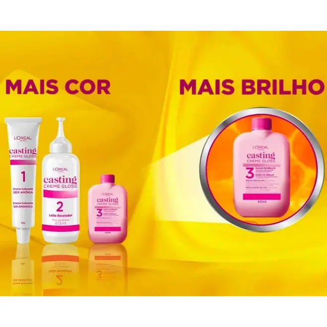 A tintura Casting Creme Gloss Nº 535 Chocolate é uma coloração sem amônia que proporciona cor intensa, brilho luminoso e aparência natural aos cabelos. Ideal para quem deseja realçar o tom castanho com reflexos quentes e sofisticados.