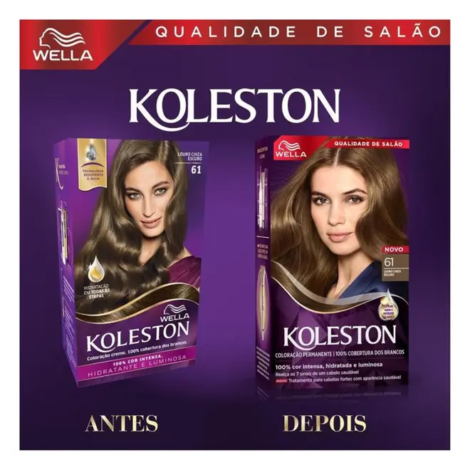 A Tinta de Cabelo Koleston 61 Louro Cinza Escuro é a coloração permanente da wella que te dá cor intensa e duradoura, graças a sua tecnologia resistente à água.