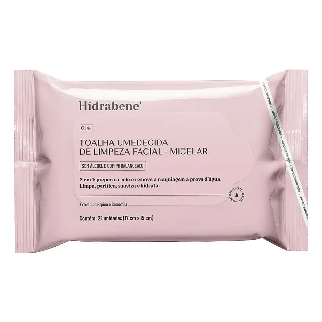 Toalha Umedecida de limpeza facial Micelar Hidrabene 25 Unidades