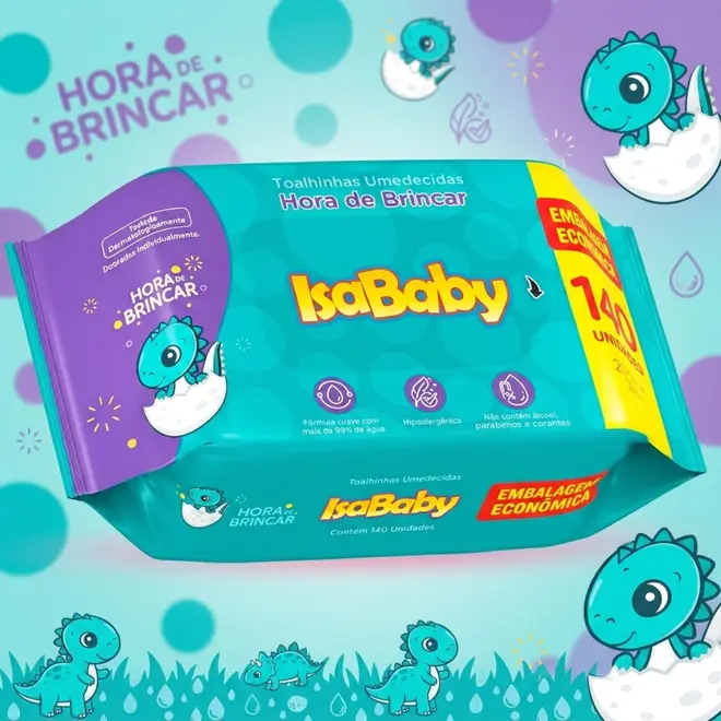 Toalha Umedecida Isababy Hora de Brincar Embalagem Econômica 140 Unidades