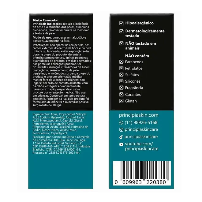 - Tônico 7% Ácido Lático + Ácido Salicílico Principia AL-7 120ml