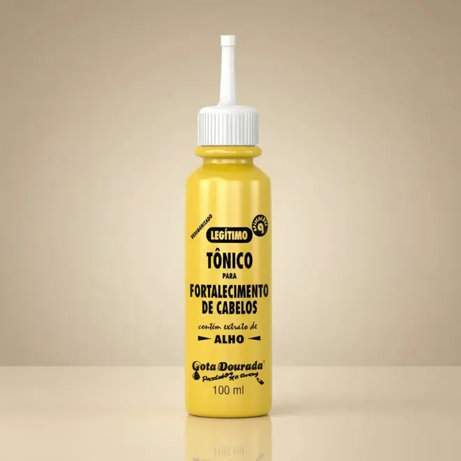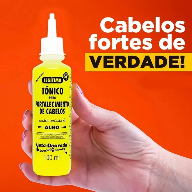O Tônico para fortalecimento de cabelos Gota Dourada, foi desenvolvido com Óleo de Alho, Extrato de Alho, Extrato de Aloe Vera e Calêndula, que fortalecem a raiz enfraquecida, auxiliando no Combate a queda, caspa, e excesso de oleosidade.