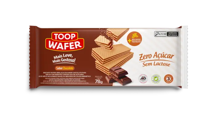 Toop Wafer Zero Açúcar 78g: crocância e sabor irresistível, sem adição de açúcar. Ideal para quem busca um lanche mais leve e saboroso no dia a dia!