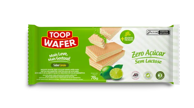 Disponível em diversos sabores, o Toop Wafer Zero Açúcar oferece um equilíbrio perfeito entre sabor, praticidade e bem-estar.