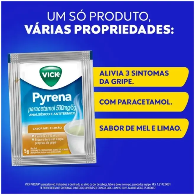 Vick Pyrena Sabor Mel e Limão Envelope 5 gramas