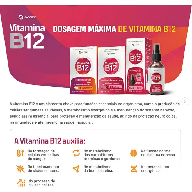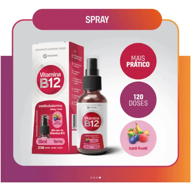Vitamina B12 9,94mcg Spray 30ml Massime Sabor Tutti Frutti