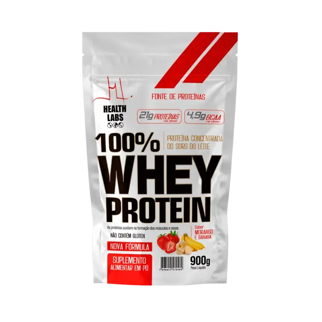 100% WHEY PROTEIN POTE HEALTH LABS MORANGO BANANA 900G pouch